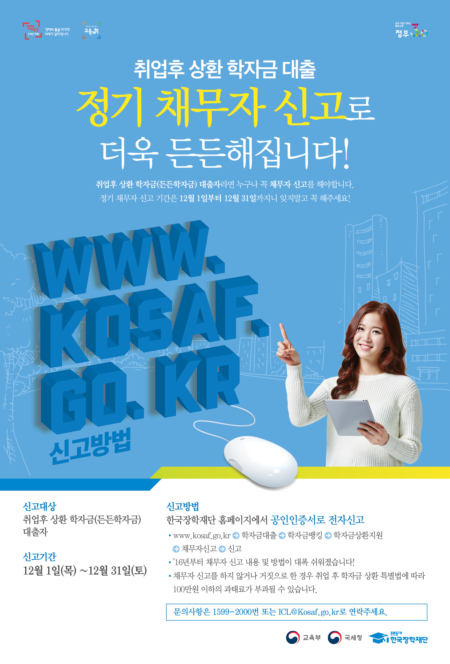 [한국장학재단] 취업 후 상환 학자금대출 정기 채무자 신고 안내