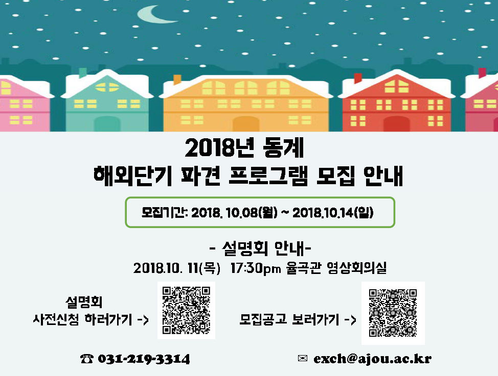 [18-동계] 해외단기파견 프로그램 모집 안내(~10월 14일까지)